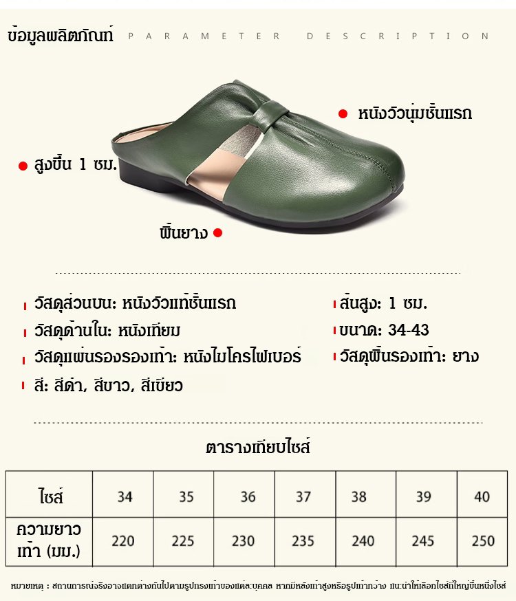 【หนังวัวชั้นแรก】รองเท้าแตะผู้หญิงแบบหัวปิด เปิดส้น